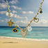 This unique necklace features a 45 + 5 cm adjustable cord chain, decorated with a mix of meaningful charms—shimmering pearls, a golden turtle, protective evil eye, and heart pendants. Lightweight yet durable, it’s perfect for layering or wearing as a statement piece.