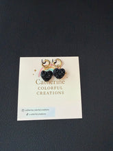 The Black Belle Earrings feature delicately faceted black heart charms suspended from polished gold-toned hoops. Their subtle shimmer and rich depth create a beautifully balanced look—timeless, graceful, and effortlessly sophisticated. Lightweight yet striking, they add a touch of refined elegance to both evening wear and elevated everyday styling.